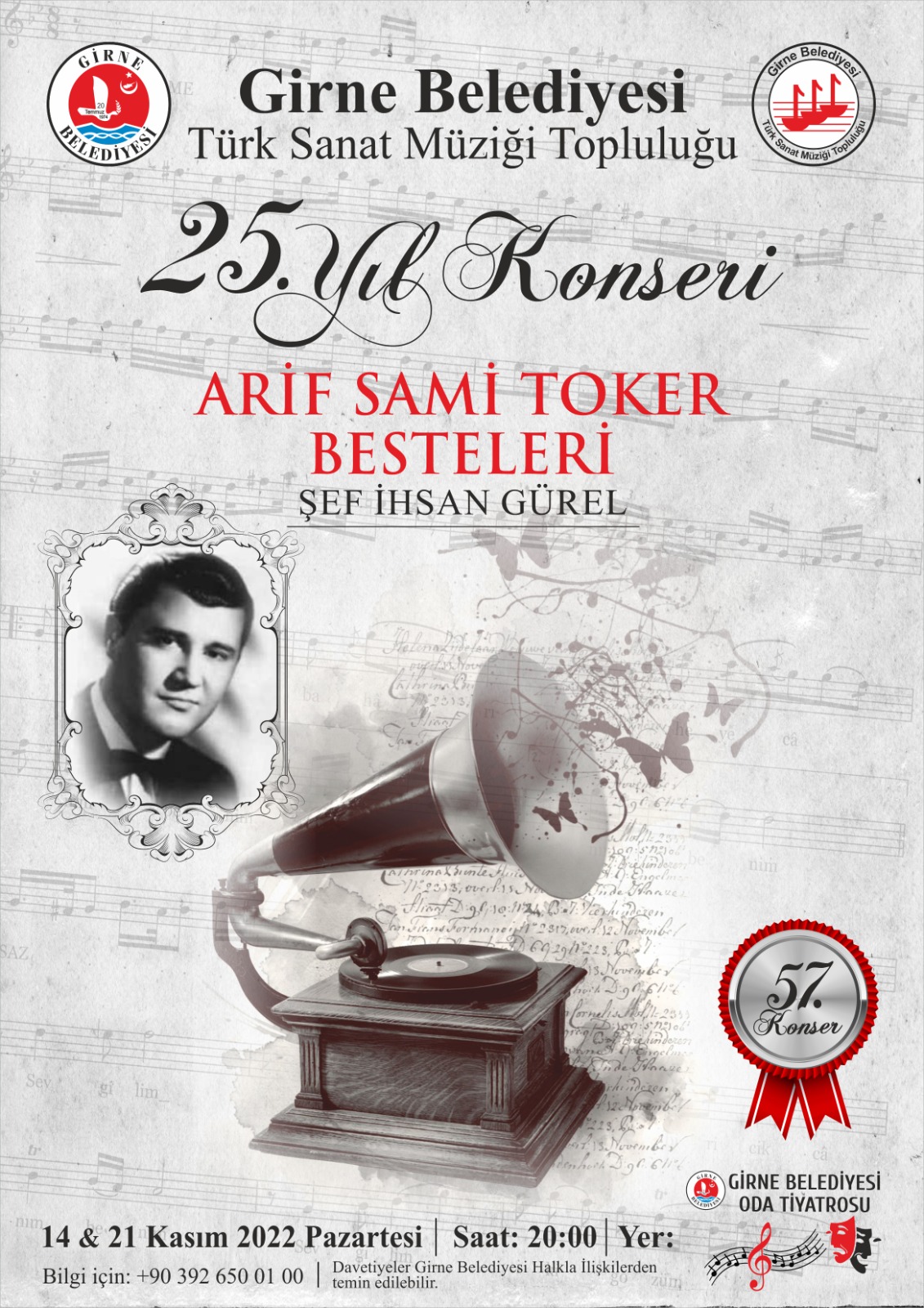 Girne Belediyesi Türk Sanat Müziği Topluluğu, 14 Kasım ve 21 Kasım Pazartesi akşamı, saat 20.00’de Girne Belediyesi Oda Tiyatrosunda 25’inci yıl konserini düzenliyor.