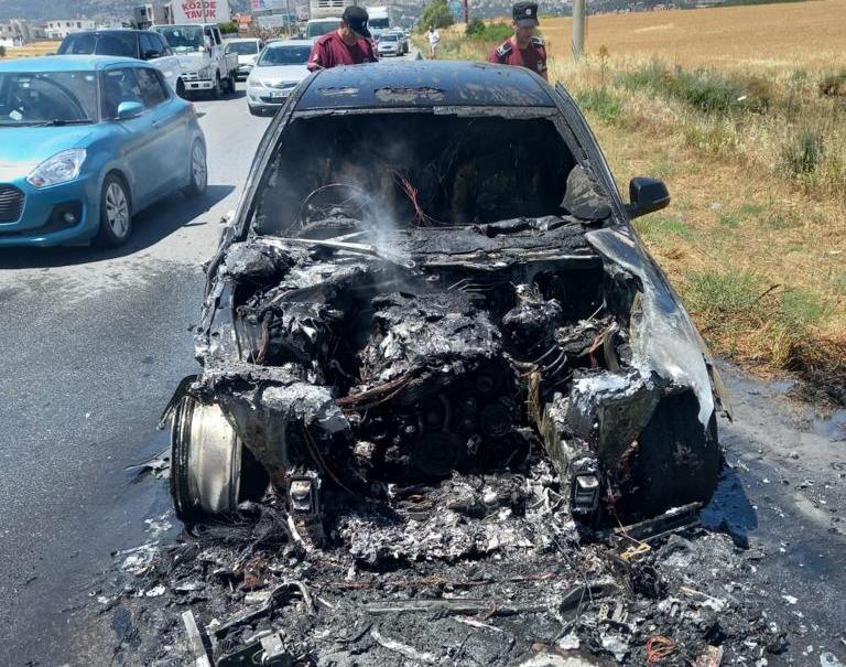 Girne-Lefkoşa yolu üzerinde seyir halindeki araç alev aldı