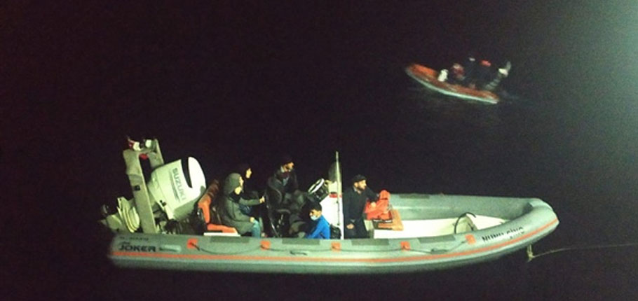 Sahil Güvenlik gemisinin gözetleme, keşif ve karakol faaliyetleri esnasında ise saat 04.00 sıralarında Sadrazam köy ile Kayalar köyü arasındaki bölgede 1adet düzensiz göç teknesi tespit edildiği ve yapılan takip sonucunda 12 Suriyeli ele geçirildi. 3’ü çocuk, 4’ü kadın ve 5’i erkek olan düzensiz göçmenler gerekli işlemler yapılmak üzere Polis Genel Müdürlüğüne teslim edildi.