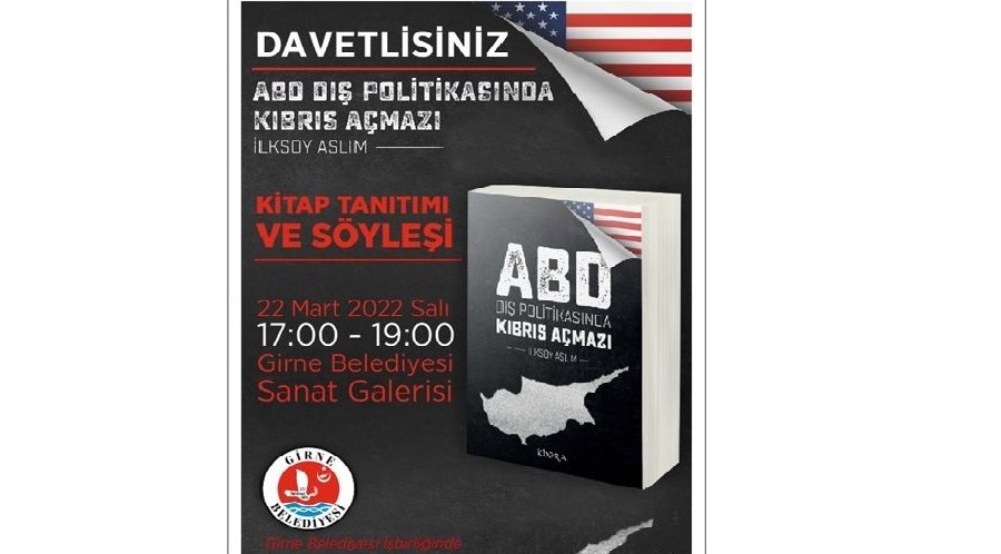Yazar İlksoy Aslim tarafından kaleme alınan “ABD Dış Politikasında Kıbrıs Açmazı” kitabının tanıtımı Girne’de yapılacak.
