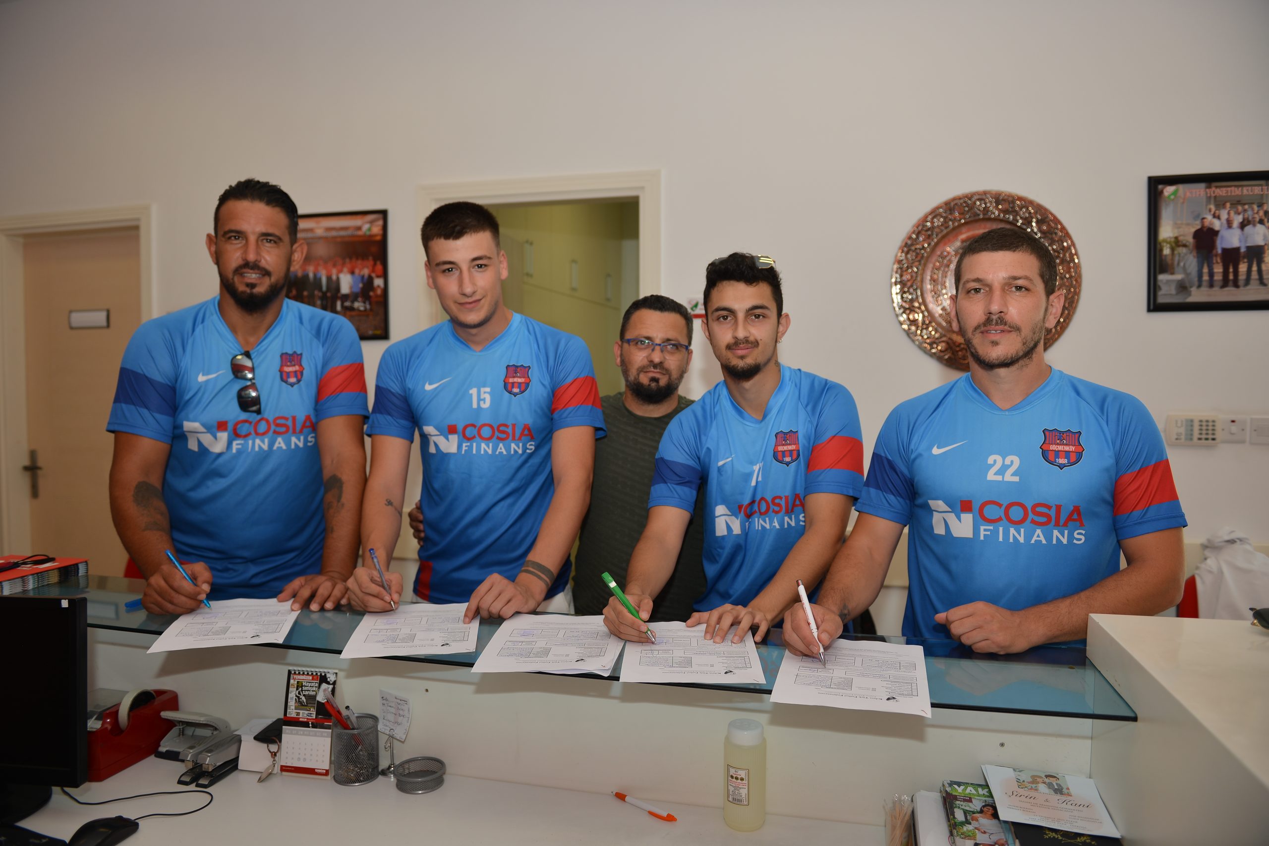 Süper Lig ekiplerinden Göçmenköy Futbol takımı önemli transferlere dün imza attırdı. Kıbrıs Türk Futbol Federasyonu binasında yapılan imza töreninde kırmızı mavili formayı giyen beş futbolcu objektiflere poz verdi.