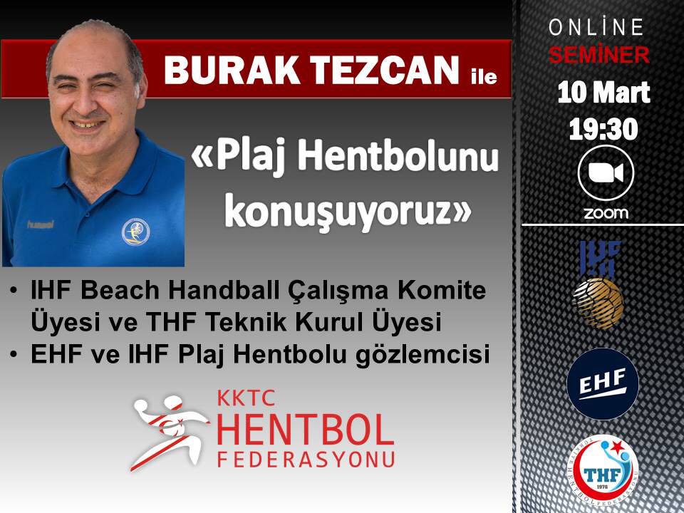 Hentbol Federasyonu seminerler dizisinin dördüncüsünü plaj hentbolu konusunda yapacak. Zoom programı üzerinden gerçekleşen seminer 10 Mart tarihinde saat 19.30’da başlayacak. Türkiye Hentbol Federasyonu Teknik Kurul Üyesi ve Uluslararası Hentbol Federasyonu Plaj Hentbolu Çalışma Komitesi üyesi, aynı zamanda, Avrupa Hentbol Federasyonu ve Uluslararası Hentbol Federasyonu Plaj Hentbolu gözlemcisi Burak Tezcan ile gerçekleşecek seminer “Plaj hentbolunu konuşuyoruz” konu başlığı ile yapılacak.