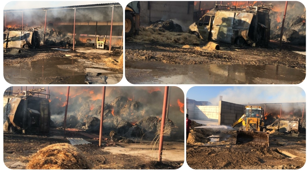 Yangın sonucu Redif Nurel’e ait 800 adet rulo balya, bir adet van araç ve fork lift yanarak zarar gördü.