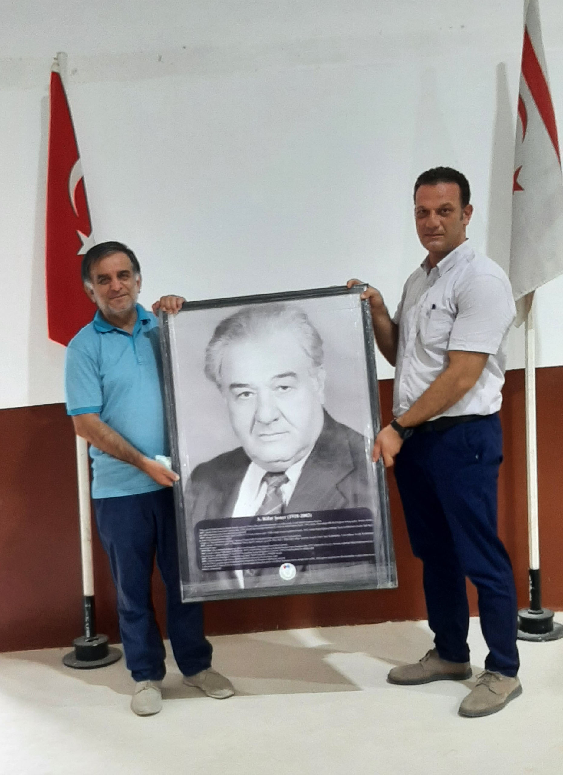 RifatReşatoğlu başkanlığındaki Güreşseverler Derneği Yönetim Kurulu,KKTC Güreş Federasyonu’nu ziyaret etti. Reşatoğlu’na derneği temsilen Sezgin Özüzmez,ÖmerÇavuşoğlu,YücelHatay,MehmetRefikoğlu ve Mustafa Denizgezen eşlik etti..Ziyaret sırasında KKTC Güreş Federasyonu Başkanı Mehmet Öznacar ile yönetim kurulu üyeleri Salih Peköz ve Behçet Öznacar da hazır bulundu..Rifat Şener’in posterini Mehmet Öznacar’a sunan RifatReşatoğlu,merhumRifat Şener’in yaşamı boyunca çok çalışkan birisi olduğunu, sadece güreşe değil, avcılık ve futbol sporuna da büyük hizmet verdiğini, kulüp başkanlığı ve Emekliler Cemiyeti başkanlığını da yaptığını belirtti..Rifat Şener’in özgeçmişini de içeren posteri memnuniyetle kabul eden Mehmet Öznacar, kurucu başkanın adını taşıyan posteri salonun en uygun yerine yerleştireceklerini belirtti.