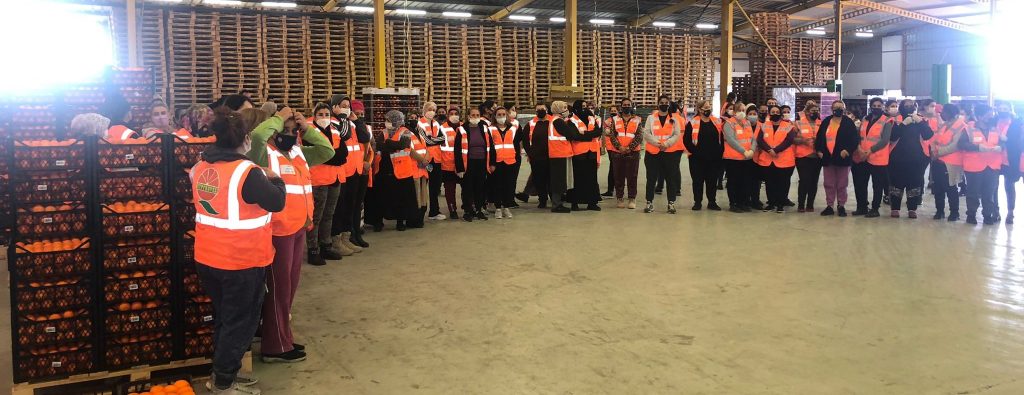 Çalışma ve Sosyal Güvenlik Bakanı Oğuzhan Hasipoğlu, Başbakan Faiz Sucuoğlu’nun eşi Ece Sucuoğlu, UBP Güzelyurt İlçe Başkanı Menteş Gündüz ve UBP Güzelyurt Kadın kolları, 8 Mart Dünya Emekçi Kadınlar Günü dolayısıyla Kalkanlı’daki Cypfruvex tesislerini ziyaret etti.