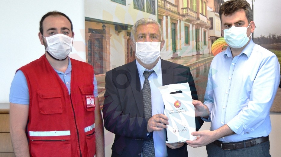Türkiye Cumhuriyeti Büyükelçiliği Sosyal Projeler Sorumlusu Ömer Dursun ile Kuzey Kıbrıs Türk Kızılayı Yönetim Kurulu Üyesi İsmail Demirci, LTB Asbaşkanı Akın Aktunç’u ziyaret ederek, Türkiye Cumhuriyeti Cumhurbaşkanı Recep Tayyip Erdoğan’ın ülkemizdeki 65 yaş ve üzerindeki kişilere dağıtılmak üzere gönderdiği hijyen paketlerini teslim etti.