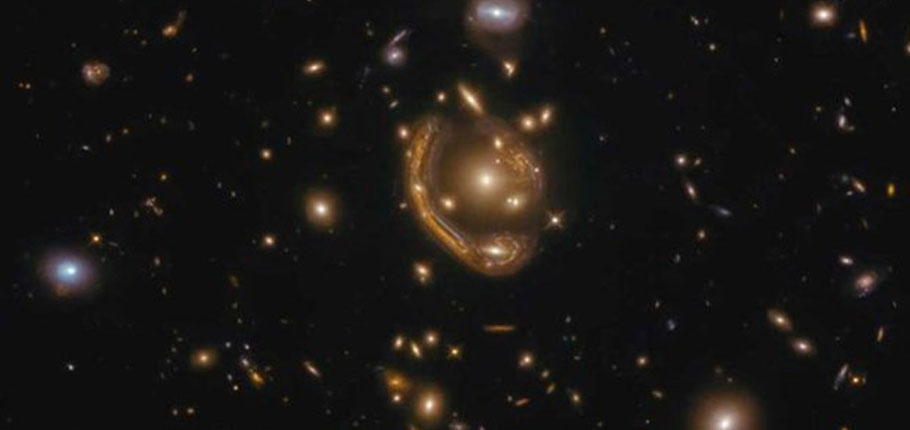 Gökbilimciler, “Burada, arka plandaki galaksiden gelen ışık, önündeki galaksi kümesinin çekim kuvvetiyle kavislenerek bükülmüş.” ifadesini kullandı.
