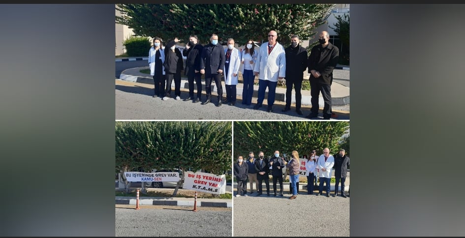 Kıbrıs Türk Kamu Görevlileri Sendikası ile Kıbrıs Türk Amme Memurları Sendikası, Gazimağusa Devlet Hastanesi Laboratuvarı’nda personel eksikliği gerekçesiyle 09.00-12.00 saatleri arasında 3 saatlik uyarı grevi gerçekleştirdi.