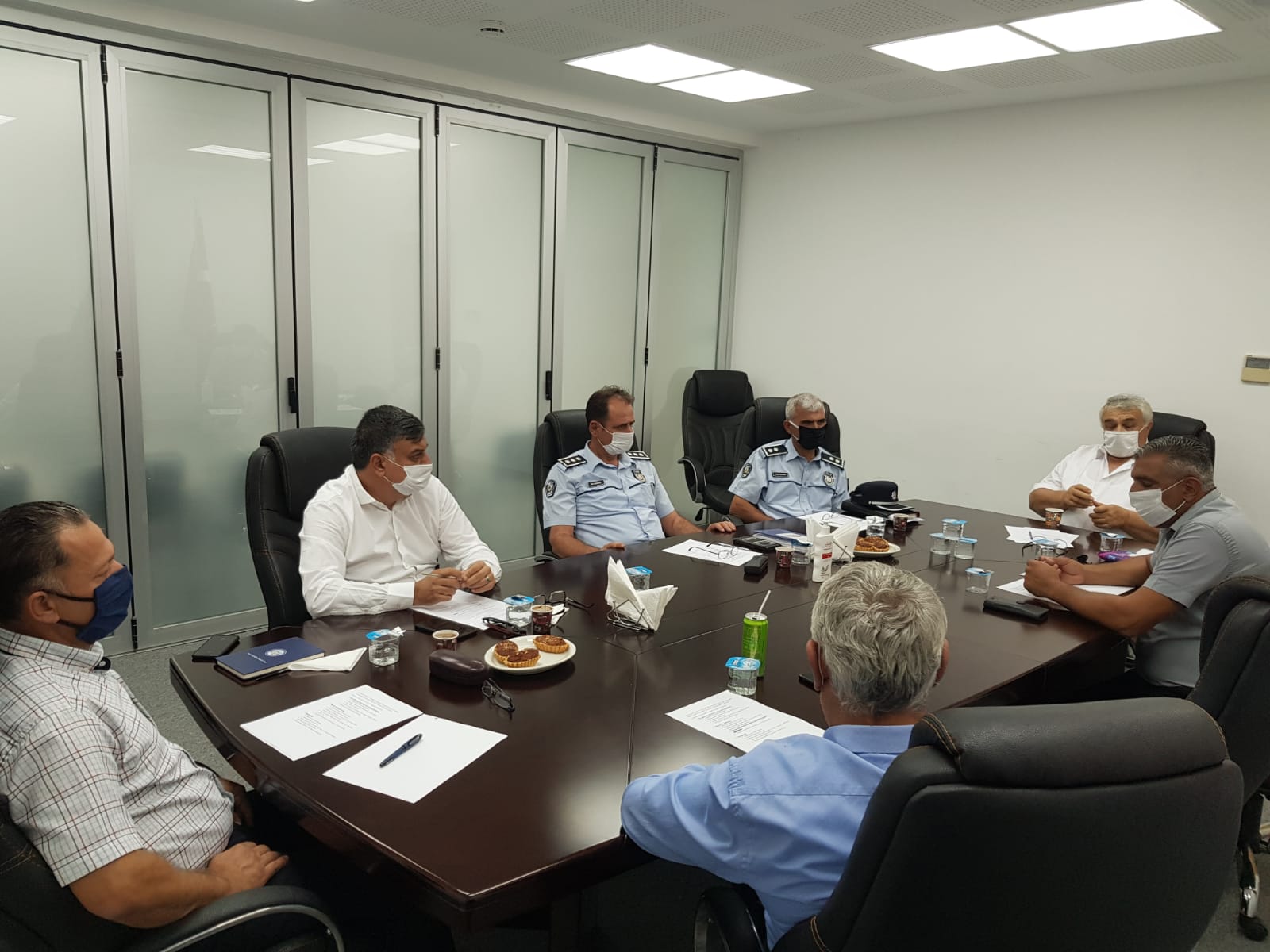 Gazimağusa İlçe Emniyet Kurulu’nun çalışmalarını kırsalda daha organize şekilde sürdürmesi amacıyla Gazimağusa Kaymakamı Kemal Serpal başkanlığında, bugün Akdoğan bucağına bağlı belediye başkanları ve ilgili Polis Karakol Amirleri ile Covid-19 tedbirleri kapsamında bir araya geldi.