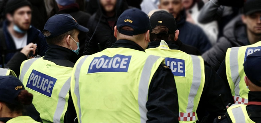İngiltere’de polise protestolara müdahale için daha fazla yetki veren tasarı karşıtı yüzlerce kişi, Bristol merkezinde toplanarak Bridewell Polis Karakoluna yürüdü. Polis, tasarının geri çekilmesini isteyen göstericilere karakola vardıklarında müdahale etti.