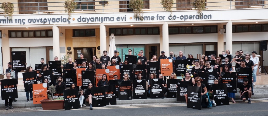 Verilen bilgiye göre, dün öğleden sonra Kuğulu Park’tan ara bölgeye doğru başlayan yürüyüşün benzeri Güney’deki Cyprus Stop Trafficking örgütü önderliğinde yapıldı, iki toplumdan katılımın sağlandığı etkinlik ara bölgedeki Home For Cooperation binası önünde ortak basın bildirisinin okunmasıyla tamamlandı.