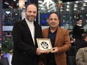 Muhtarlar Birliği Başkanı Akay Darbaz da toplantıya katılarak İskele ve köylerin sorunlarıyla yakından ilgilendiği ve göreve gelir gelmez ilk iş muhtarlarla bir araya geldiği için İskele Belediye Başkanı Hasan Sadıkoğlu’na plaket takdim etti.