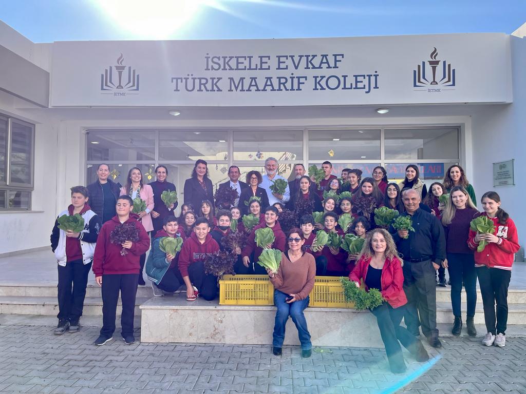 İskele Evkaf Türk Maarif Koleji’nde İyilik Projesi kapsamında  öğrenciler  tarafından yetiştirilen sebzelerin hasadı yapıldı.  Sebze  satışından elde edilen gelir de okula bağışlanıyor.