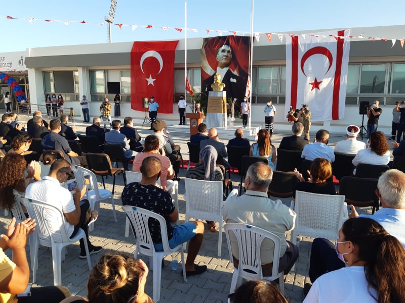 Konuşmaların ardından 8 milyon Türk Lirası’na mal olan yapımı Kıbrıs Vakıflar İdaresi tarafından tamamlanan İskele Evkaf Türk Maarif Koleji, Milli Eğitim ve Kültür Bakanlığı’na devredildi ve okulun açılışı gerçekleştirildi.