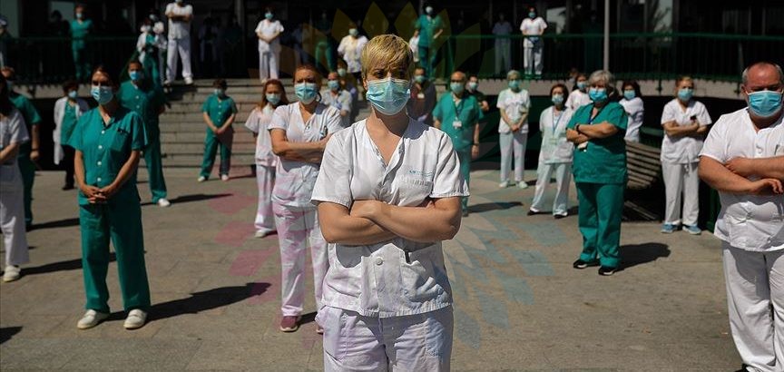 Yeni tip koronavirüs (Kovid-19) salgınının en yoğun görüldüğü ülkelerden İspanya'da, başkent Madrid'deki hastanelerde görevli sağlık personeli, çalışma koşullarını protesto etti.