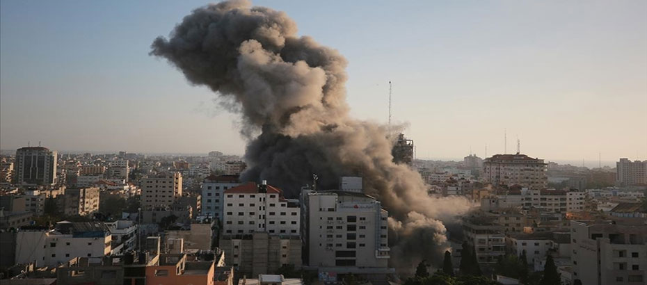 İsrail, abluka altındaki Gazze’nin en işlek bölgelerinden birinde yer alan dairelerin ve ticari ofislerin bulunduğu 14 katlı Eş-Şuruk adlı binayı hava saldırısıyla yerle bir etti.