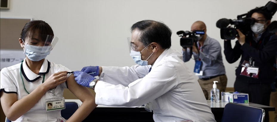 Japonya’da yeni tip koronavirüse (Kovid-19) karşı sağlık çalışanlarına aşı uygulamaya başladı.