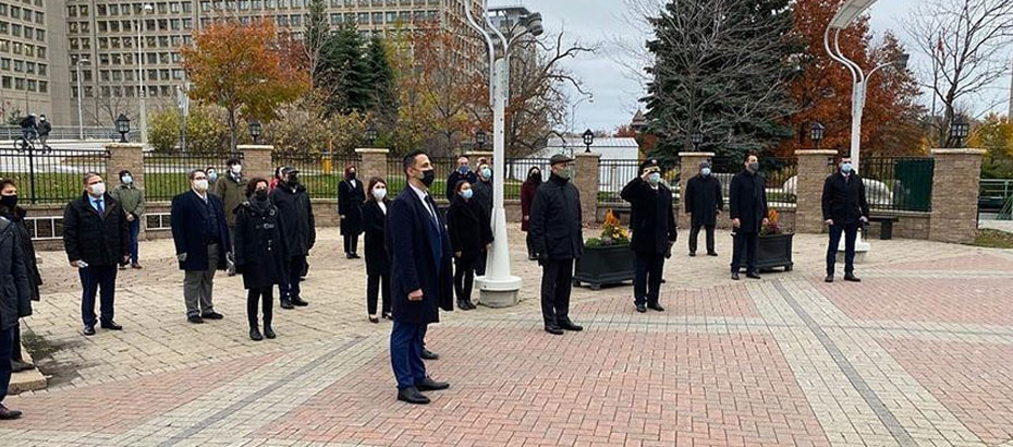 “Bu 29 Ekim’de ilk kez Kuzey Kutbu dairesi Yellowknife da Türk bayrağı, Kanada semalarında dalgalandı. Kanada’nın Ottawa, Mississagua, Brampton, Winnipeg, Halifax, Calgary, Saskatoon ve Regina şehirlerinde de bayrağımız göndere çekildi. Ottawa Belediye Başkanı Jim Watson tarafından imzalanan ve Ottawa Belediyesinin 29 Ekim tarihini ‘Türkiye Cumhuriyeti Günü’ kabul eden beratı, teslim alındı.”
