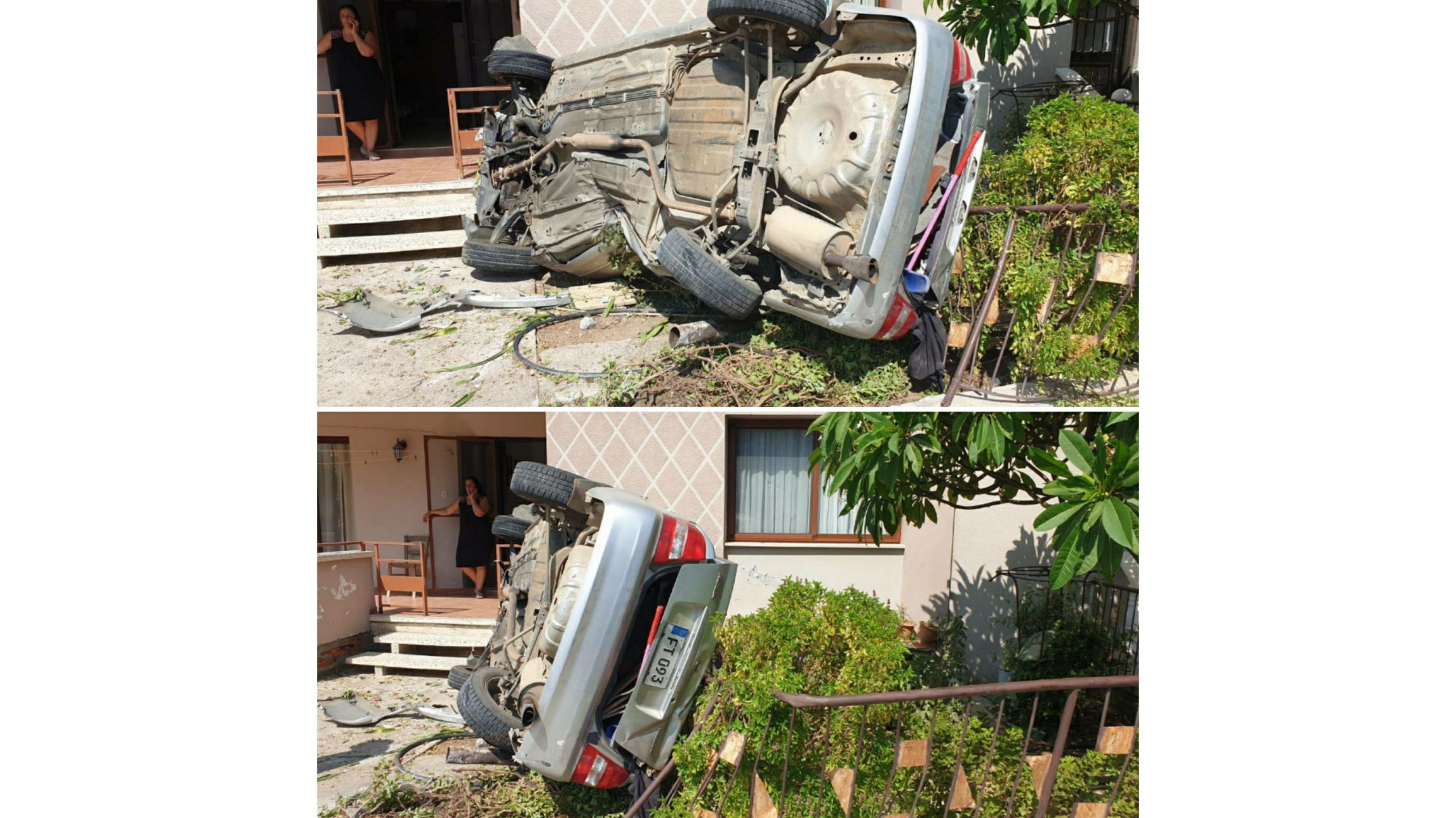 Polis Basın Subaylığı’ndan verilen bilgiye göre bugün saat 13:00 sıralarında, Karşıyaka’da, Atilla Köşkcü (E-26) yönetimindeki FT 093 plakalı araç ile anayol üzerinde doğu istikametine doğru seyrettiği sırada önünde aynı istikamete doğru seyreden Altuğ Özşehitoğlu (E-20) yönetimindeki RM 206 plakalı aracı sağ tarafından geçemeye çalıştığı esnada, RM 206 plakalı araç sürücüsünün ise sağa sinyal verip evine dönüşe geçmek için dönüşe geçmeye çalıştığı sırada çarpışmışlardır. Çarpmanın etkisiyle kontrolsüz bir şekilde yoluna devam eden FT 093 plakalı araç yolun solunda bulunan 26 nolu evin demir korkuluklarına çarpıp sağ yan kısmi üzerine devrilmiştir.