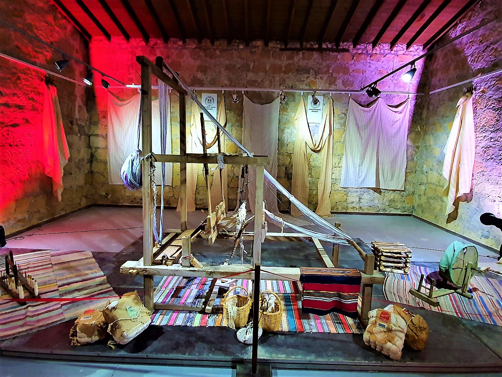 Sergide kadınlar tarafından el emeği ile dokunan çarşafların sergilendiğini dile getiren Eroğlu, “Kaybolan kültürlerimizin tekrardan gündeme getirip, hatırlatılması misyonuyla hareket ediyoruz.” dedi.