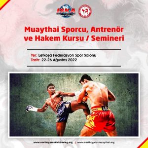 KKTC Kickboks ve Muaythai Federasyonu’nun 2022 yılı Faaliyet Programında yer alan Muaythai Sporcu, Antrenör ve Hakem Kursu Semineri, 22-26 Ağustos 2022 tarihleri arasında, Lefkoşa’da Federasyon Antrenman Salonu’nda yapılıyor.