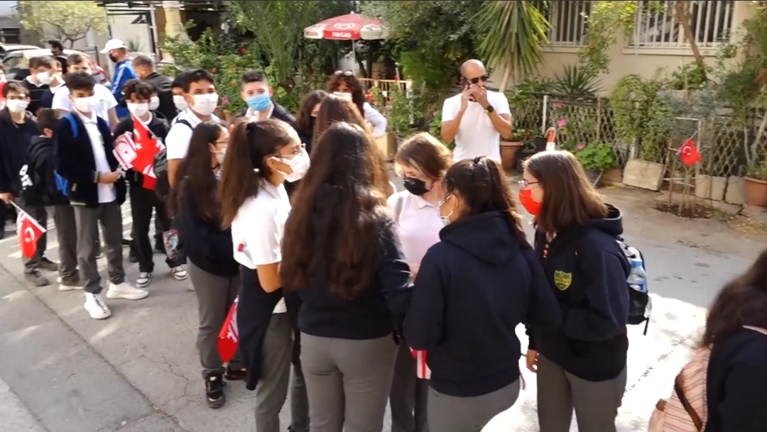 Marşlar, şarkılar, KKTC ve Türkiye Cumhuriyeti bayrakları eşliğinde Milli Eğitim ve Kültür Bakanlığı’ndan Cumhuriyet Meclisi’ne yürüyen öğrencilere güzergah üzerinde bulunan vatandaşlar da destek verdi.