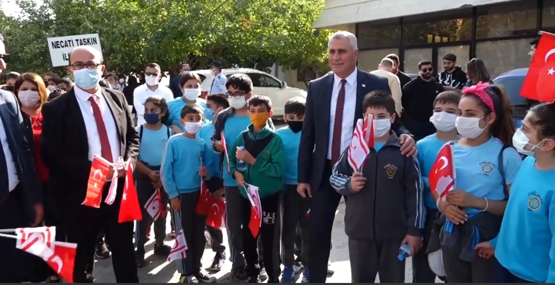 Cumhuriyet Meclisi’nde tamamlanan yürüyüşte öğrencilere hitap eden Milli Eğitim ve Kültür Bakanı Olgun Amcaoğlu, “Atatürk’ün Bir Türk Dünyaya Bedeldir” sözünden hareket ederek Kuzey Kıbrıs Türk Cumhuriyeti’ne sahip çıkmayı sürdüreceklerini vurguladı.