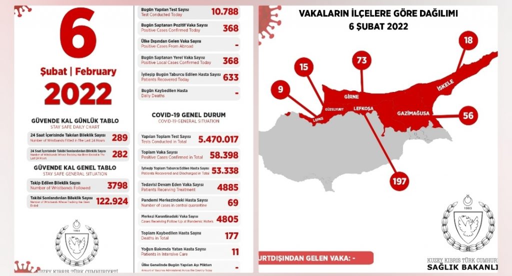 KKTC‘de son 24 saatte yapılan test sayısı 10.788 olup, 368 pozitif vakaya rastlanmış, 633 kişi taburcu edilmiştir.