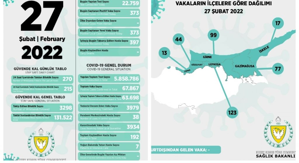 27 Şubat 2022 Covid-19 genel durumu şöyle;