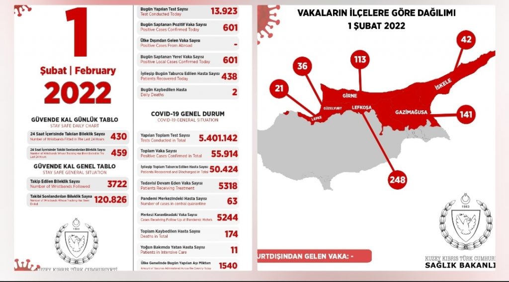 1 Şubat  2022 Covid-19 genel durumu şöyle;