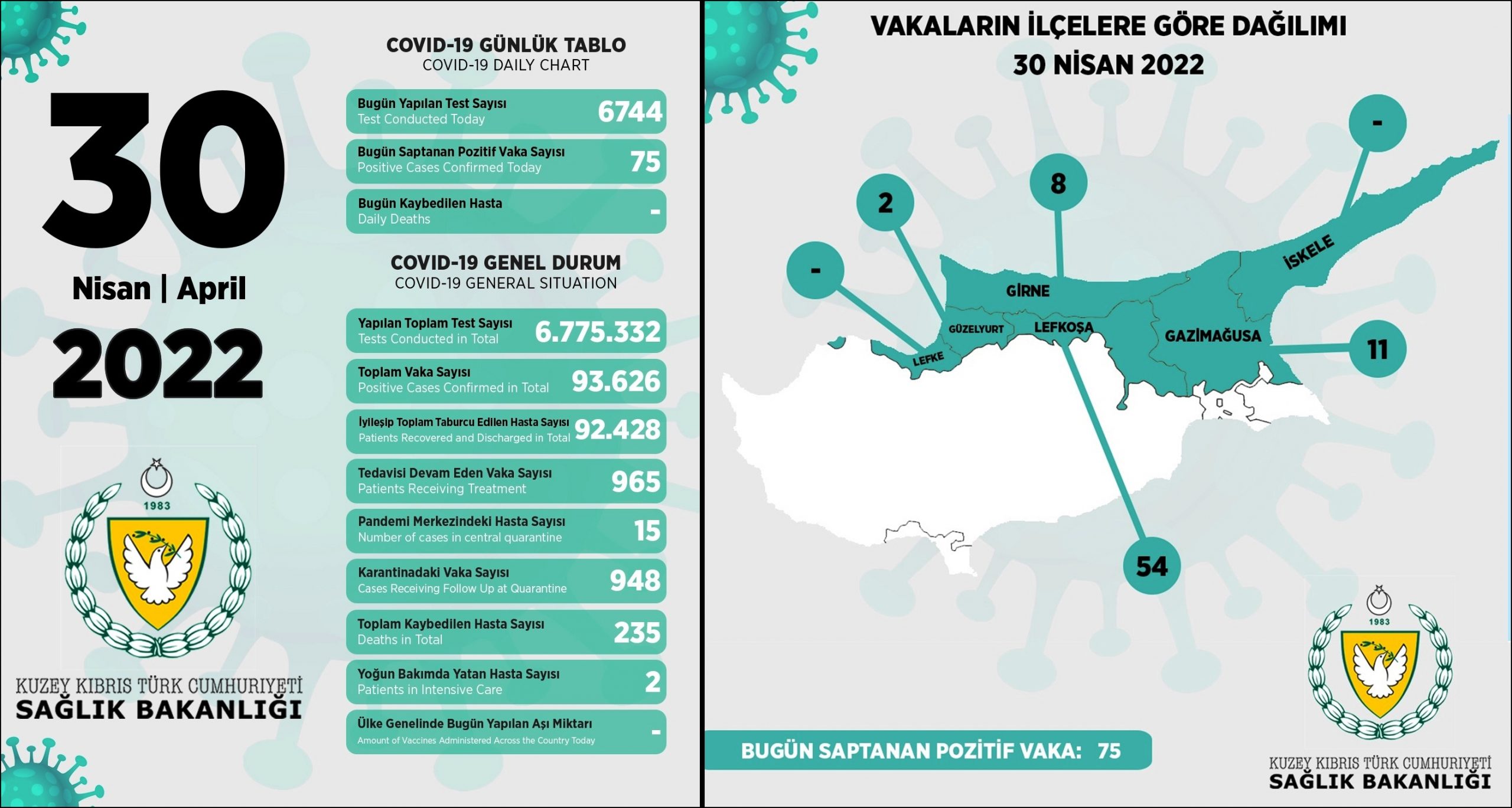 30 Nisan 2022 Covid-19 genel durumu şöyle;