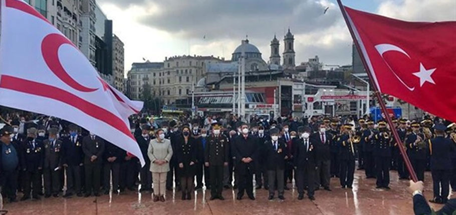 KKTC‘nin 38. kuruluş yıl dönümü dolayısıyla Taksim Cumhuriyet Anıtı’nda tören düzenlendi.