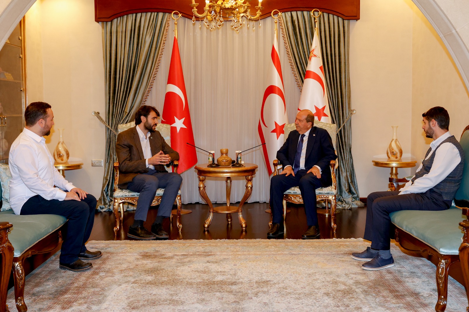 Cumhurbaşkanı Ersin Tatar, TÜGVA Yönetim Kurulu Üyesi Muhammed Burak Sarman ve beraberindekileri kabul ederek görüştü.