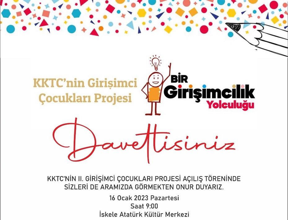 KKTC’nin II. Girişimci Çocukları Projesi’nin açılış töreni, 16 Ocak Pazartesi İskele’de yapılacak.