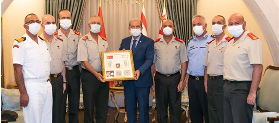 Cumhurbaşkanı Ersin Tatar, Güvenlik Kuvvetleri Komutanı Tümgeneral Zorlu Topaloğlu, Güvenlik Kuvvetleri Komutan Yardımcısı Tuğgeneral İbrahim Dağman, Polis Genel Müdürü Ahmet Soyalan ve Güvenlik Kuvvetleri Komutanlığı’na bağlı Ana Ast Birlik komutanlarını kabul etti.