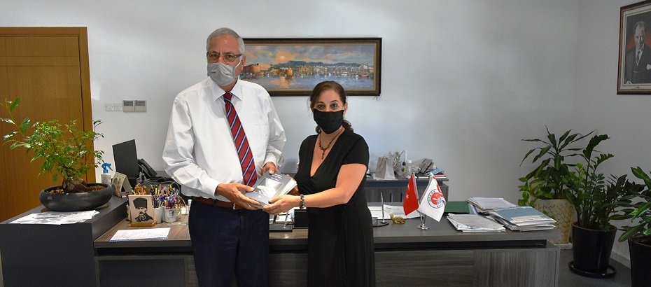 Yazar Feyzan Korur, Girne Belediye Başkanı Nidai Güngördü’yü ziyaret kitaplarını takdim etti.