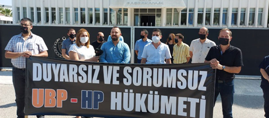 Sendika eylem sırasında “Duyarsız ve Sorumsuz UBP– HP hükümeti” yazılı pankart açtı.