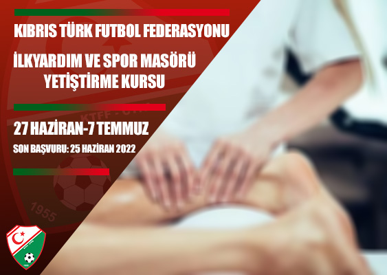 Kıbrıs Türk Futbol Federasyonun organize ettiği ilk yardım ve masör yetiştirme semineri, 27 Haziran-9 Temmuz 2022 tarihlerinde Kıbrıs Türk Futbol Federasyonunda gerçekleşecek…6 Haziranda başlayan ve en az 10 en fazla 50 kişinin katılabileceği seminere başvurular 24 Haziran Cuma günü sona erecek…