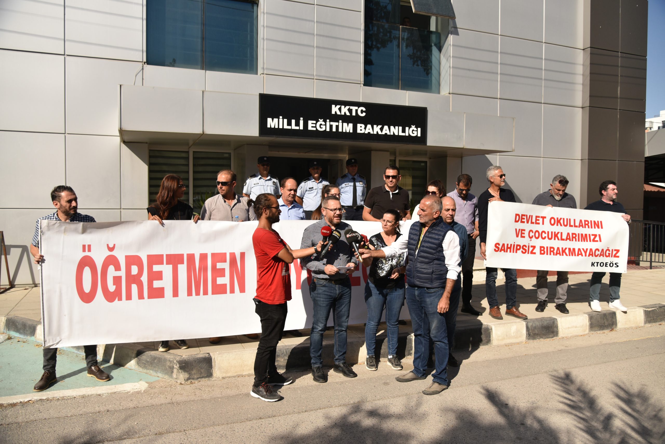 Kıbrıs Türk Orta Eğitim Öğretmenler Sendikası (KTOEÖS), “45 gündür okullarda giderilmeyen öğretmen eksikliğini görmezden geldiği” gerekçesiyle Milli Eğitim Bakanlığını önünde protesto eylemi yaptı..