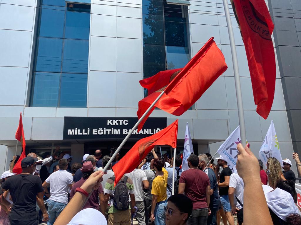 KTOEÖS Başkanı Ozan Elmalı ve KTÖS Genel Sekreteri Burak Maviş imzasıyla yapılan ortak yazılı açıklamada, iki sendikanın, 2 Ağustos Salı günü Eğitim Bakanlığı önünde yaptığı eylem sonrasında 22 öğretmenin polise ifade vermeye çağrıldığı belirtildi.