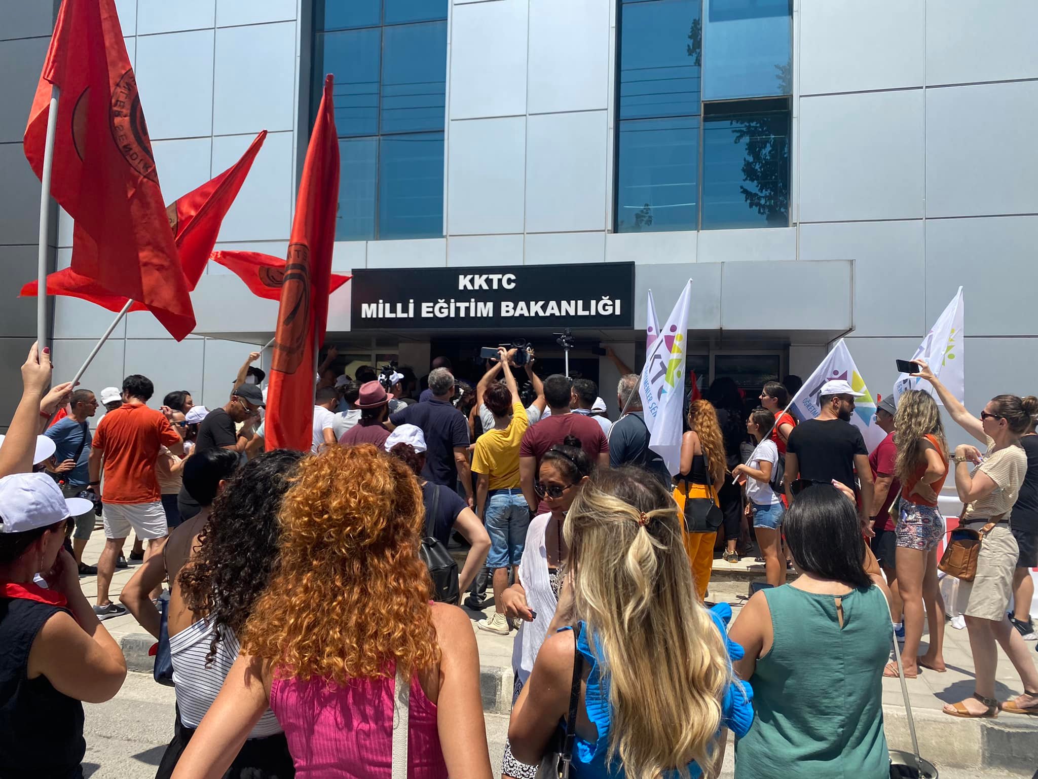 Kıbrıs Türk Öğretmenler Sendikası ve Kıbrıs Türk Orta Eğitim Öğretmenler Sendikası, Milli Eğitim Bakanlığı önünde eylem yapıyor.