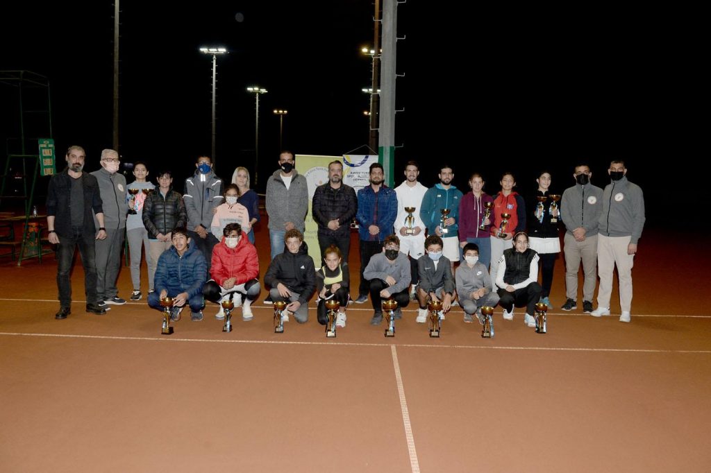 Kıbrıs Türk Spor Yazarları Derneği (KTSYD) ile Kuzey Kıbrıs Tenis Federasyonu (KKTF) işbirliğinde düzenlenen KTSYD 2021 Masterler Kupası tamamlandı…Kadın ve Erkeklerde 12,14,16 ve 13+ Büyükler kategorisinde düzenlenen organizasyonun final maçlarının ardından, dereceye giren sporculara kupaları, KTSYD Başkanı Burhan Gürkan, KKTF Başkanı Hasan Gazioğluyanı sıra KTSYD Yönetim Kurulu Üyeleri Beyzade Ünalmış ve Çilen Ulusoy ile fotoğraf muhabirlerinden Mustafa Evliya tarafından verildi.