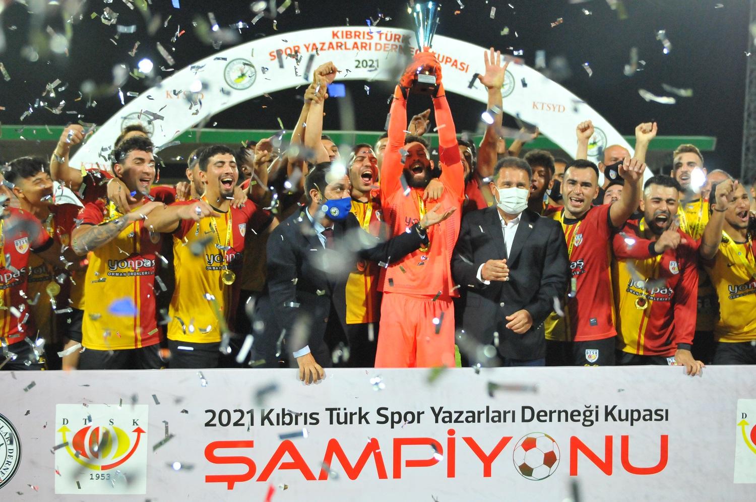 Mücadelede,Doğan Türk Birliği’ni 3-2’lik skorla yenen Dumlupınar, Kovid 19 pandemisi sonrası uzun süre ara verilen futbola dönüşte oynanan sezonun önemli kupasının sahibi oldu.