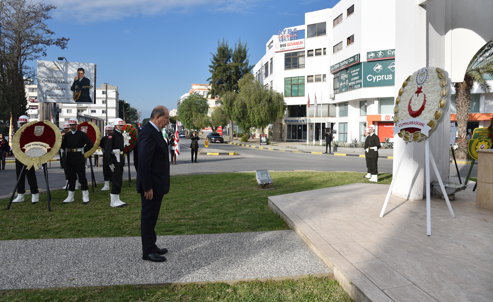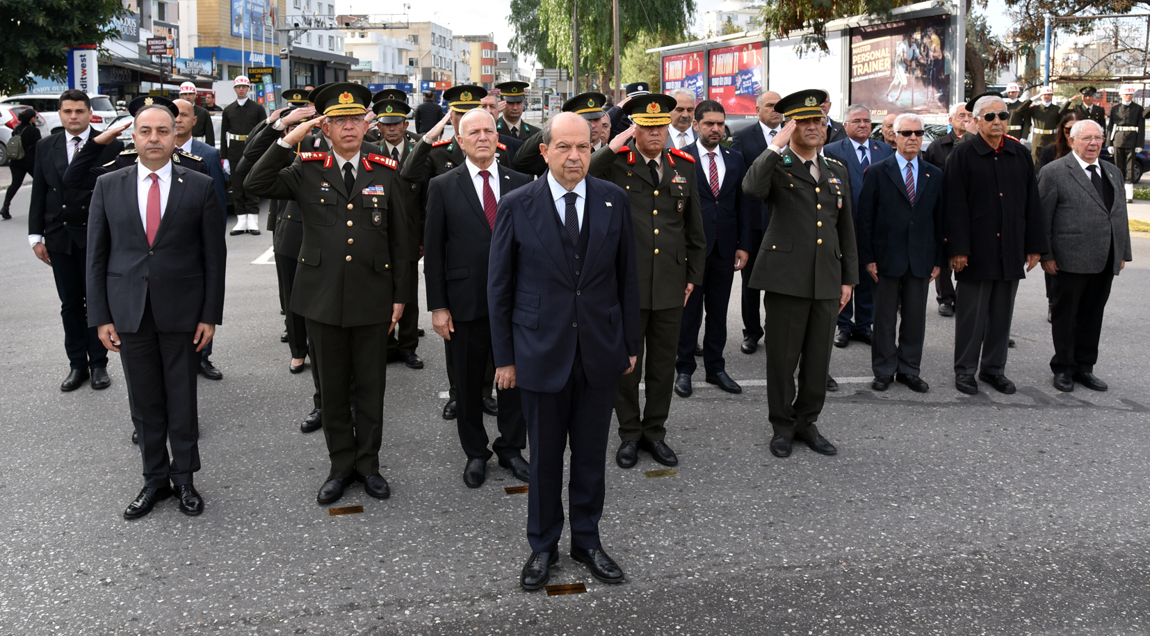 Muharip derneklerden, siyasi partilerden, okullardan temsilcilerle, öğrencilerin, şehit yakınlarının da yer aldığı törende günün anlam ve önemine ilişkin konuşmayı Cumhurbaşkanı Ersin Tatar yaptı.