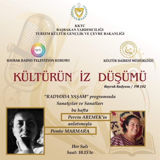Kültür Dairesi’nden yapılan yazılı açıklamaya göre, Bayrak Radyosu’nda Esin Küçük ve Çelen Tehdit’in program yapımcılığını üstlendiği, Radyoda Yaşam isimli programda, haftada bir salı günleri saat 10.15’te yayınlanan Kültürün İz Düşümü isimli bölümde yarın saat 10.15’te Şair Pembe Marmara tanıtılıyor.