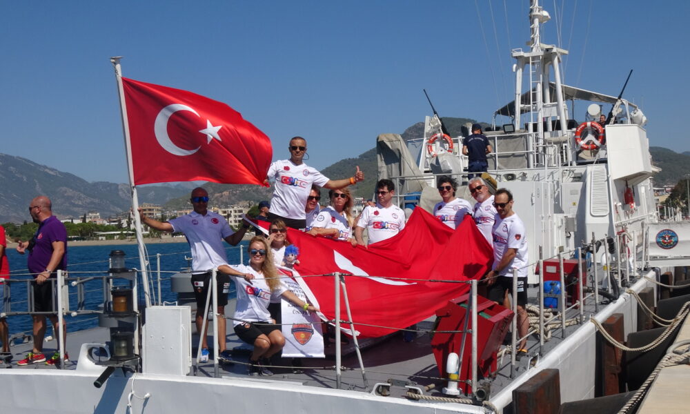 Hazırlıkların ardından sporcular, Anamur Kaymakamı Bilal Bozdemir’den aldıkları Türk bayrağıyla Anamur iskelesinden denize atladı.