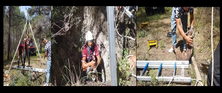 Kuyuya düşen oğlak, itfaiye ekiplerinin uğraşları sonucu düşmüş olduğu kuyudan sağ salim çıkarılarak sahibine teslim edildi.