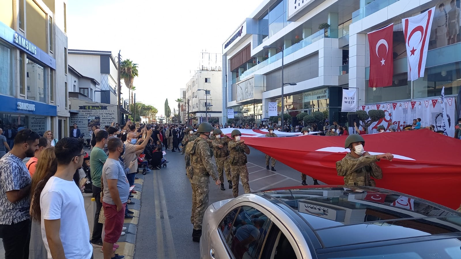 Mehmet Akif Caddesi’ndeki yürüyüşte Türkiye’nin Lefkoşa Büyükelçisi Ali Murat Başçeri, Güvenlik Kuvvetleri Komutanı Tümgeneral Zorlu Topaloğlu ve Milli Eğitim Bakanı Olgun Amcaoğlu da yer aldı.