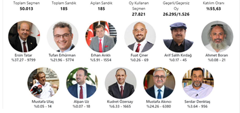 Lefkoşa ve Güzelyurt’ta sandıktan ilk sırada bağımsız aday Mustafa Akıncı, Gazimağusa’da ise UBP adayı Ersin Tatar çıktı.