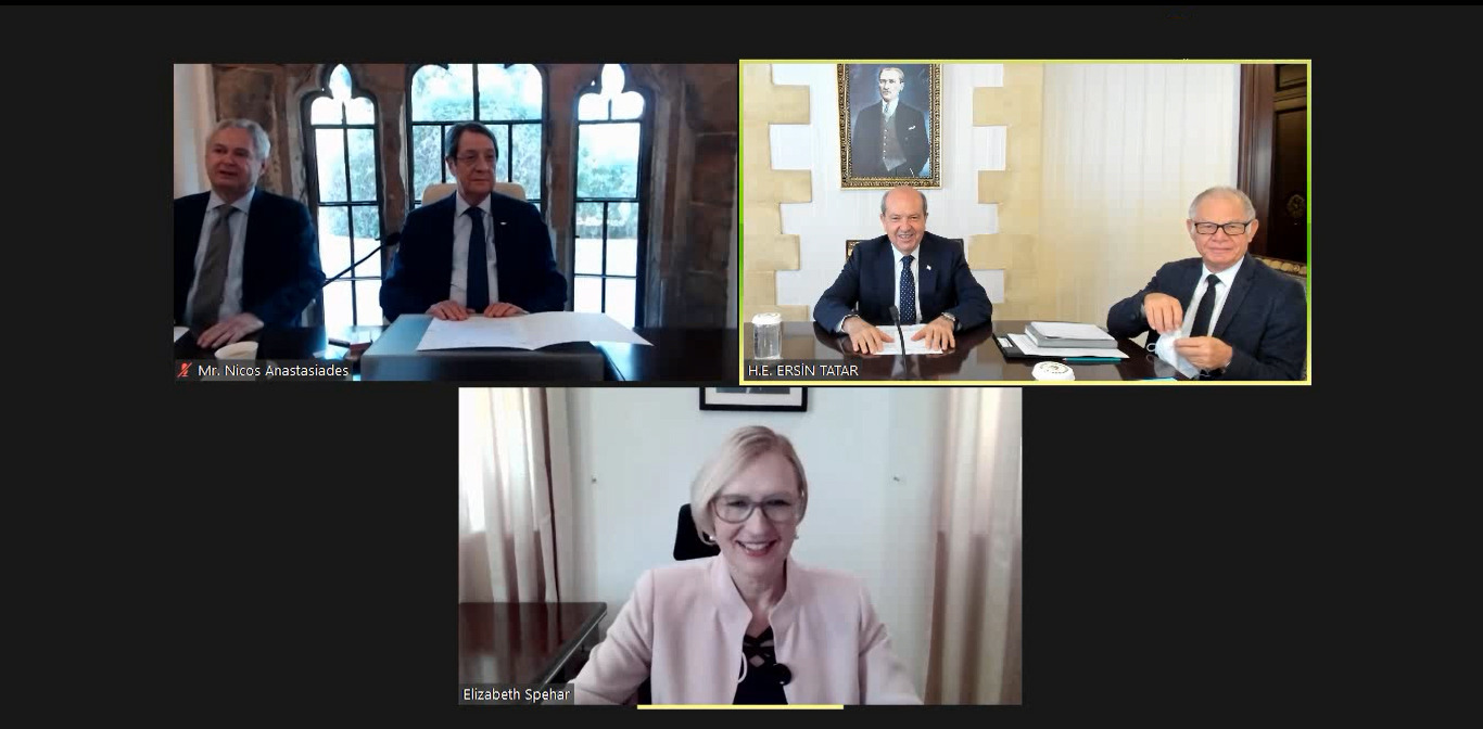 Cumhurbaşkanı Ersin Tatar bugün BM Genel Sekreteri’nin Kıbrıs Özel Danışman Vekili ve Barış Gücü Misyon Şefi Elizabeth Spehar’ın daveti üzerine Rum lider Anastasiadis ile çevirim içi bir görüşme gerçekleştirdi.